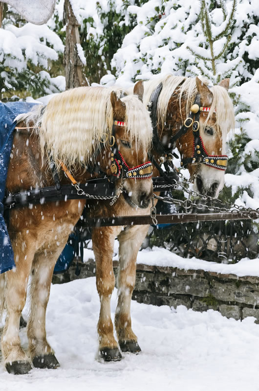 "Die Pferde schnauben, sie sind wunderschön geschmückt. Es hat den Eindruck, dass sie den Weg immer wieder gern stapfen. Wohlig, in eine dicke Decke gehüllt, nehme ich die Ruhe der Winterlandschaft in mich auf. Die Zeit scheint für einen Moment still zu stehen."